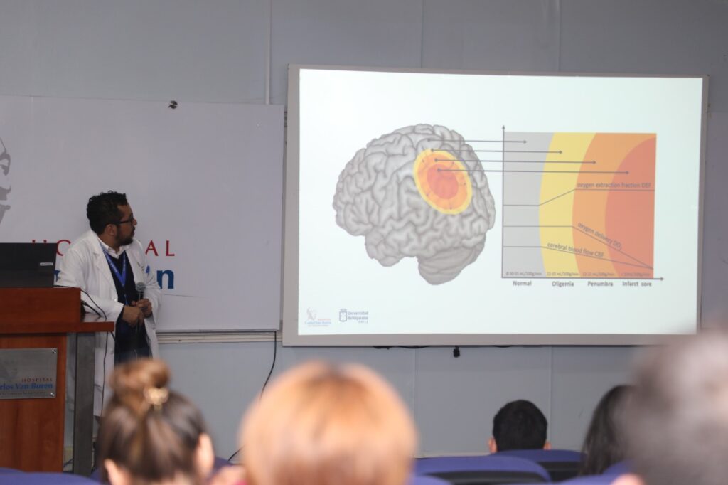 El neurorradiólogo Rodrigo Riveros abordó los avances en trombectomía mecánica, una técnica que permite extraer el coágulo que obstruye el flujo sanguíneo en el cerebro. “Es una de las intervenciones médicas con mayor evidencia científica en términos de efectividad. En nuestro hospital estamos trabajando para ampliar su disponibilidad a más pacientes en la región”, aseguró.