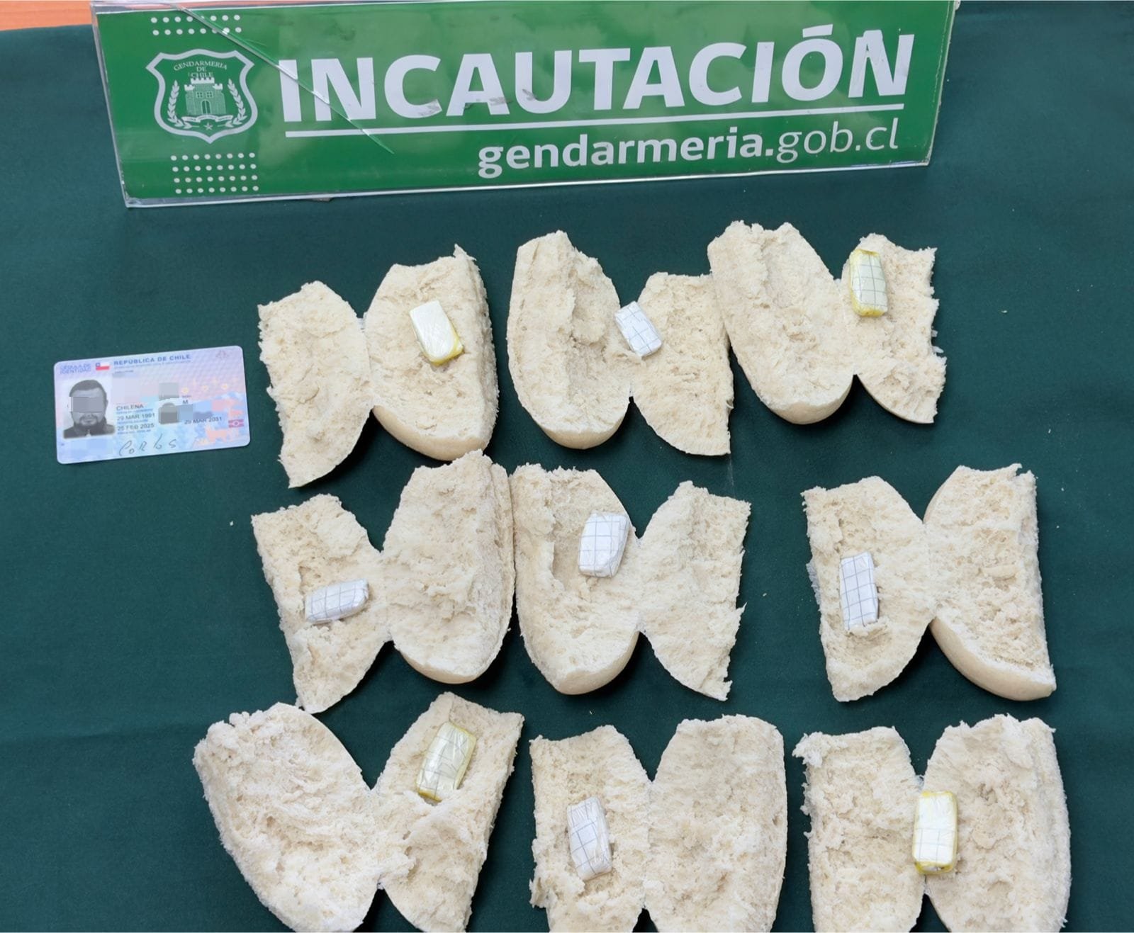 El jefe (s) del Complejo, teniente coronel Juan Medina Medina, entregó detalles del procedimiento. “Gracias al profesionalismo de nuestro personal, apostado en el registro de visitas, se logró la incautación de siete envoltorios de papel cuadriculado, contenedores de una sustancia pastosa color beige y dos envoltorios de papel cuadriculado contenedores de una hierba color verde, lo que intentó ingresar un ciudadano, debidamente enrolado, a la unidad al interior de nueve panes tipo marraqueta”.