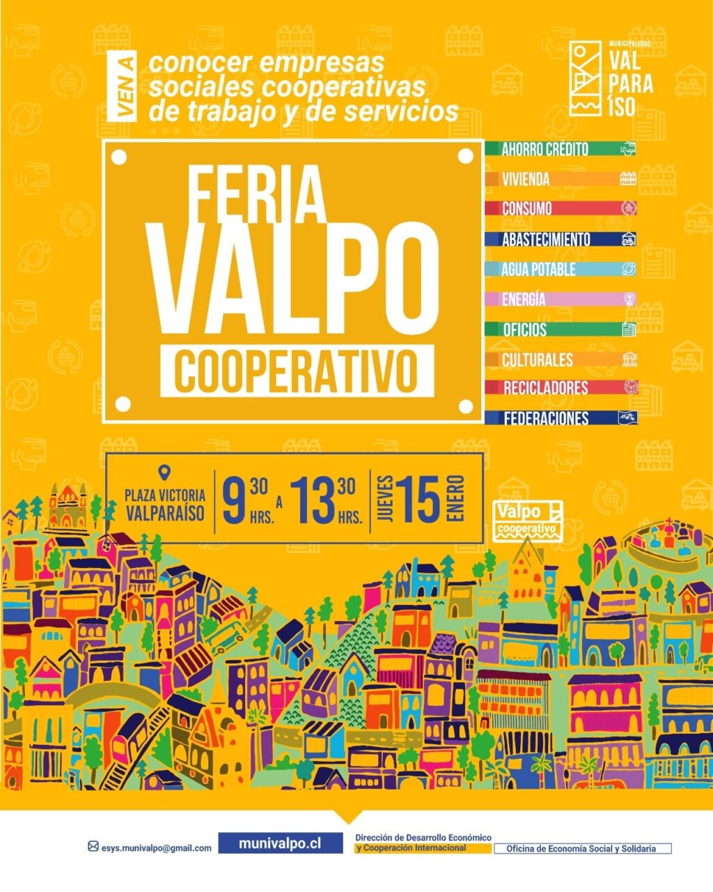 La Feria Valpo Cooperativo: Trabajo y Servicios está dirigida tanto a quienes forman parte del movimiento cooperativista como a los distintos actores del sistema productivo. Se enmarca en la estrategia municipal de fomento a la economía social y solidaria, con el propósito de visibilizar a las empresas cooperativas como un sector relevante de la economía local, promover sus servicios y bienes, y consolidar un espacio permanente de articulación entre cooperativas, instituciones y ciudadanía.