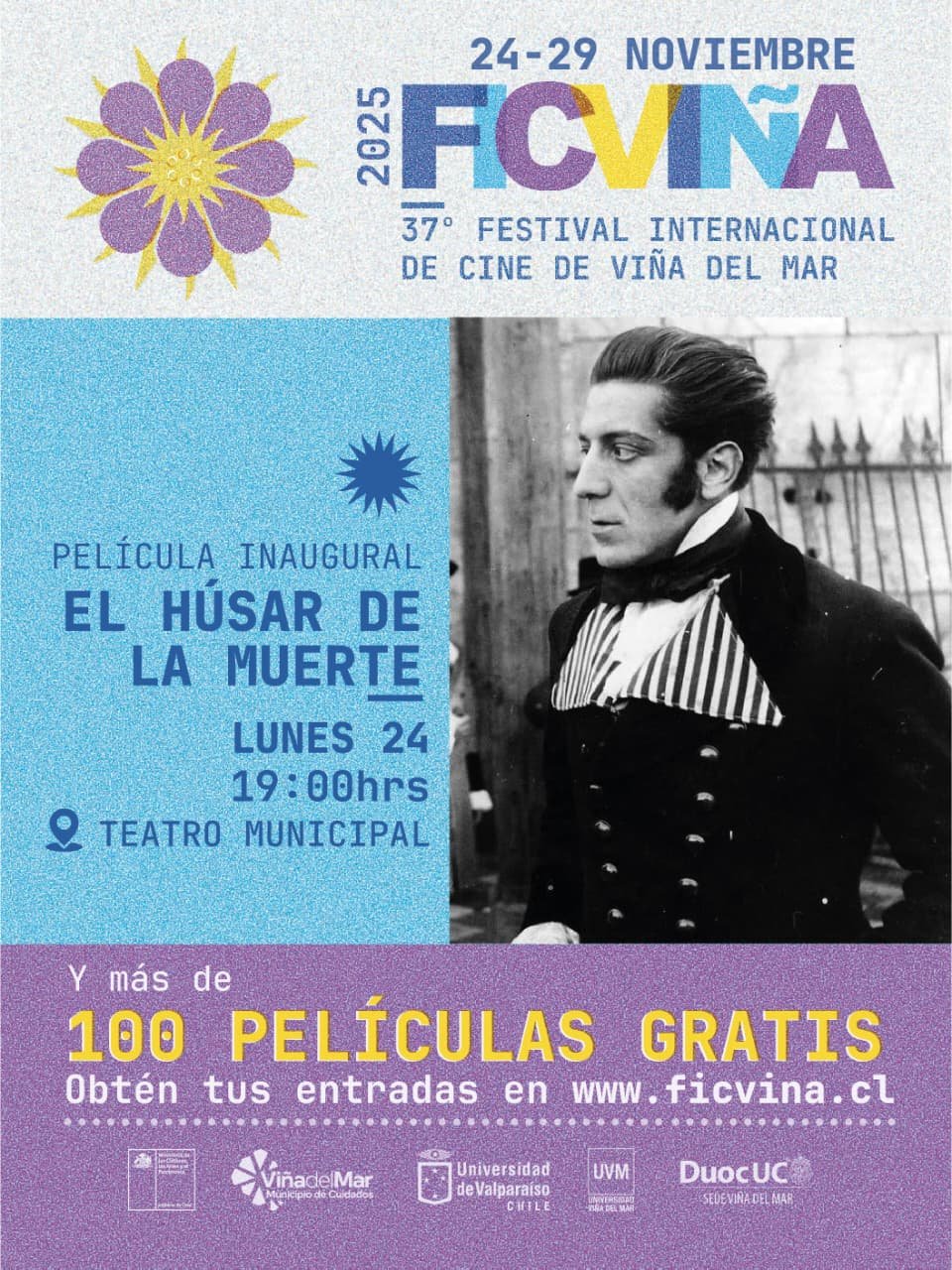 La inauguración tendrá lugar en el emblemático Teatro Municipal de Viña del Mar, donde se proyectará el clásico restaurado El Húsar de la Muerte. La función contará con un detalle que promete emocionar a todos: la música será interpretada en vivo por la reconocida Orquesta Marga Marga, lo que convertirá la experiencia en un verdadero viaje histórico y sensorial.