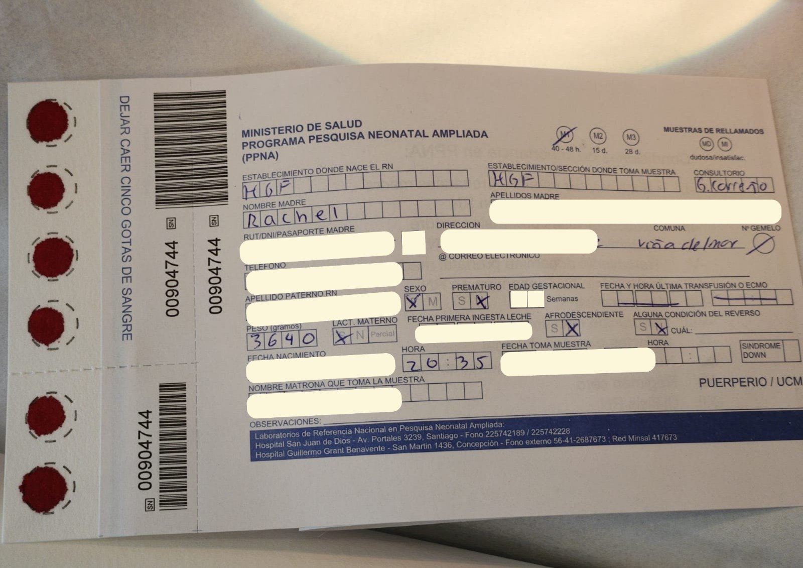 Las muestras obtenidas en el hospital son enviadas al laboratorio del Hospital San Juan de Dios en Santiago. En pocos días, los resultados están disponibles. Si se confirma alguna sospecha, se realiza un segundo análisis en el Instituto de Tecnología y Nutrición de los Alimentos (INTA) de la Universidad de Chile. Este paso permite corroborar el diagnóstico y derivar al recién nacido hacia el tratamiento adecuado.
