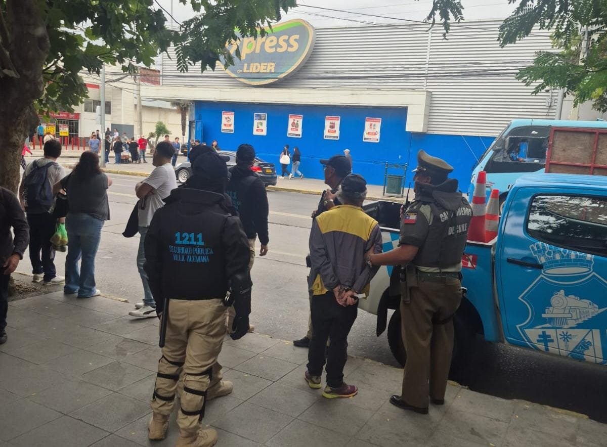 Un nuevo operativo de Seguridad Pública de Villa Alemana terminó con la retención de un sujeto que vendía artículos robados en pleno centro de la ciudad. El hecho ocurrió durante la tarde de este lunes, a las afueras del Supermercado Santa Isabel de Avenida Valparaíso, donde el individuo fue sorprendido ofreciendo productos sustraídos recientemente.