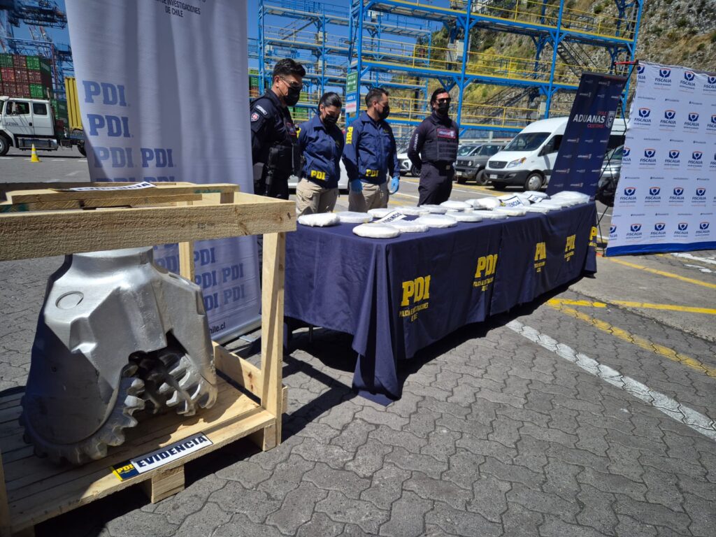 Fue en uno de los almacenes extraportuarios donde la Brigada Antinarcóticos y Contra el Crimen Organizado (Brianco) Valparaíso logró interceptar los envíos. Mediante revisión física y tecnología especializada, se descubrió que grandes implementos de perforación industrial habían sido modificados para ocultar droga en su interior.