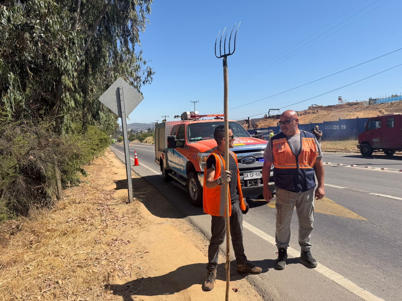 La intervención comenzó en el tranque Recreo y luego en el cruce de Marga Marga y Troncal Sur, puntos estratégicos que serán cerrados al tránsito vehicular durante el peregrinaje hacia la Virgen de Lo Vásquez. La urgencia de estas acciones responde tanto a la alta concurrencia de personas como a las altas temperaturas que incrementan el riesgo de incendios.