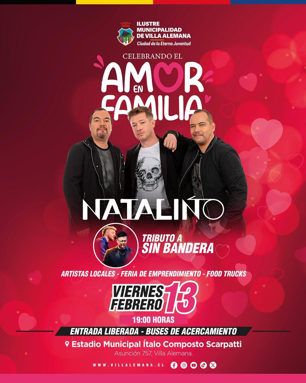 El evento, titulado “Celebrando el Amor en Familia en Villa Alemana”, contará con entrada completamente liberada y buses de acercamiento desde la estación de la comuna hacia el estadio, asegurando que nadie quede fuera de esta fiesta del corazón. La propuesta busca reunir a la comunidad en un espacio seguro y acogedor, donde el amor y la convivencia sean los protagonistas.